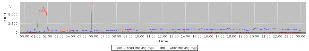 avg(dm-2 read) = 18.85 avg(dm-2 write) = 35.47