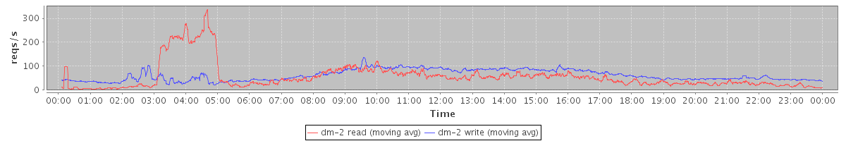 avg(dm-1 read) = 2010.31 avg(dm-1 write) = 453.73