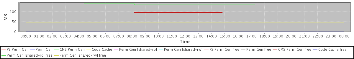 avg(PS Perm Gen) = 0.00 avg(Perm Gen) = 0.00 avg(CMS Perm Gen) = 137.27 avg(Code Cache) = 47.51 avg(Perm Gen [shared-ro]) = 0.00 avg(Perm Gen [shared-rw]) = 0.00 avg(PS Perm Gen free) = 0.00 avg(Perm Gen free) = 0.00 avg(CMS Perm Gen free) = 93.70 avg(Code Cache free) = 0.43 avg(Perm Gen [shared-ro] free) = 0.00 avg(Perm Gen [shared-rw] free) = 0.00