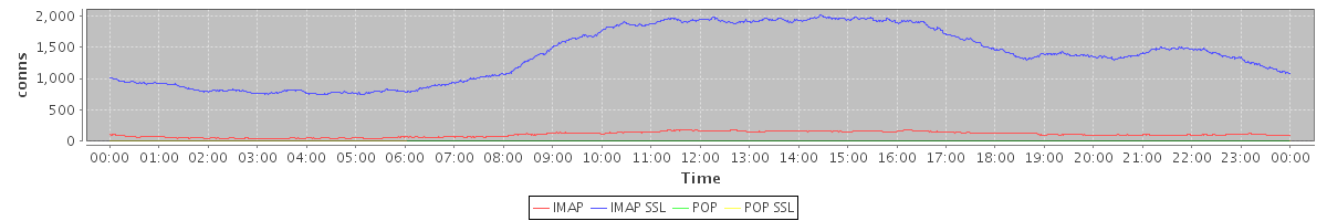 avg(IMAP) = 107.08 avg(IMAP SSL) = 1368.25 avg(POP) = 0.02 avg(POP SSL) = 3.00