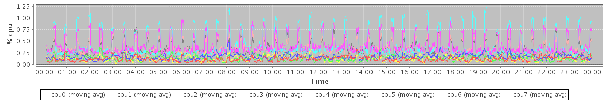 avg(cpu0) = 0.08 avg(cpu1) = 0.13 avg(cpu2) = 0.06 avg(cpu3) = 0.09 avg(cpu4) = 0.05 avg(cpu5) = 0.01 avg(cpu6) = 0.01 avg(cpu7) = 0.01