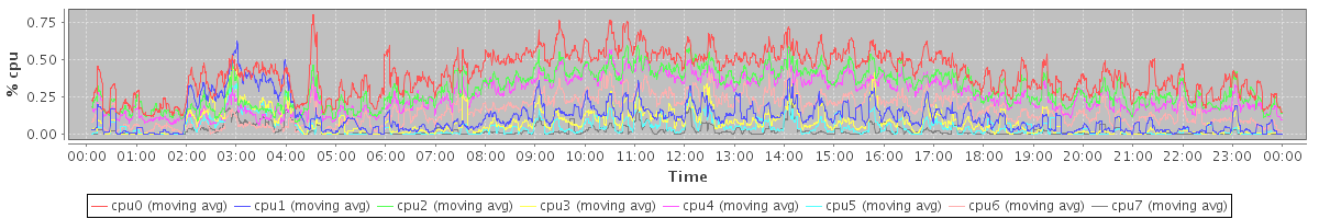 avg(cpu0) = 1.29 avg(cpu1) = 1.07 avg(cpu2) = 0.91 avg(cpu3) = 0.80 avg(cpu4) = 0.94 avg(cpu5) = 0.69 avg(cpu6) = 0.74 avg(cpu7) = 0.67