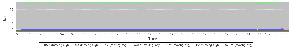 avg(user) = 1.26 avg(sys) = 0.16 avg(idle) = 98.54 avg(iowait) = 0.03 avg(nice) = 0.00 avg(irq) = 0.00 avg(softirq) = 0.00