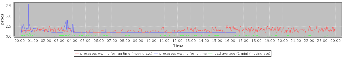 avg(processes waiting for run time) = 0.65 avg(processes waiting for io time) = 0.03 avg(load average (1 min)) = 0.15