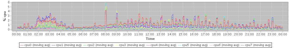 avg(cpu0) = 0.06 avg(cpu1) = 0.18 avg(cpu2) = 0.02 avg(cpu3) = 0.05 avg(cpu4) = 0.02 avg(cpu5) = 0.03 avg(cpu6) = 0.02 avg(cpu7) = 0.02