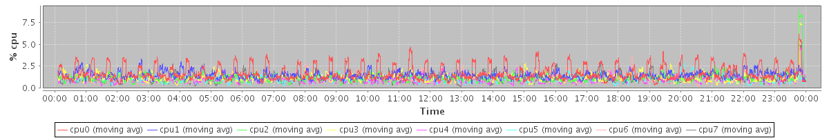 avg(cpu0) = 0.00 avg(cpu1) = 0.01 avg(cpu2) = 0.04 avg(cpu3) = 0.03 avg(cpu4) = 0.11 avg(cpu5) = 0.00 avg(cpu6) = 0.01 avg(cpu7) = 0.00