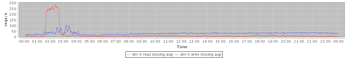 avg(dm-0 read) = 19.78 avg(dm-0 write) = 32.49