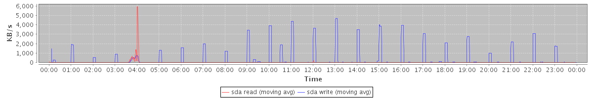 avg(sda read) = 0.34 avg(sda write) = 4.68