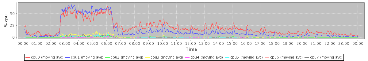 avg(cpu0) = 0.18 avg(cpu1) = 0.24 avg(cpu2) = 0.06 avg(cpu3) = 0.08 avg(cpu4) = 0.04 avg(cpu5) = 0.07 avg(cpu6) = 0.03 avg(cpu7) = 0.04