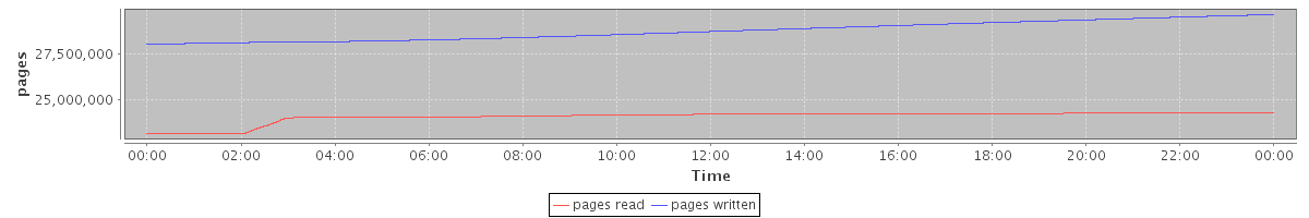 avg(pages read) = 24085424.20 avg(pages written) = 28778797.88