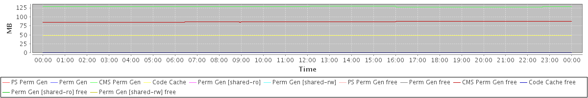 avg(PS Perm Gen) = 0.00 avg(Perm Gen) = 0.00 avg(CMS Perm Gen) = 128.36 avg(Code Cache) = 47.49 avg(Perm Gen [shared-ro]) = 0.00 avg(Perm Gen [shared-rw]) = 0.00 avg(PS Perm Gen free) = 0.00 avg(Perm Gen free) = 0.00 avg(CMS Perm Gen free) = 86.34 avg(Code Cache free) = 0.39 avg(Perm Gen [shared-ro] free) = 0.00 avg(Perm Gen [shared-rw] free) = 0.00