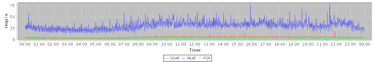 Host zm09.stanford.edu: Mailboxd: Request Rate by Client Protocol