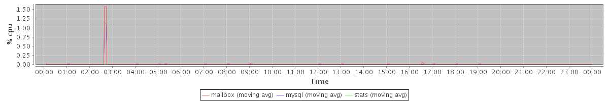 avg(mailbox) = 0.01 avg(mysql) = 0.01 avg(stats) = 0.00