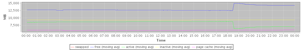 avg(swapped) = 0.00 avg(free) = 13047.38 avg(active) = 8262.75 avg(inactive) = 9285.91 avg(page cache) = 5808.81
