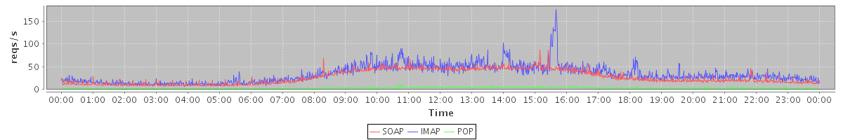 Host zm06.stanford.edu: Mailboxd: Request Rate by Client Protocol