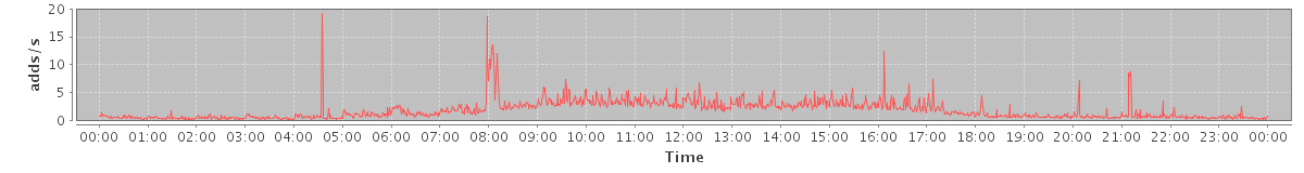 max(MsgActionRequest.move) = 2128.00 max(GetContactsRequest) = 889.00 max(MsgActionRequest.delete) = 4530.00 max(NoOpRequest) = 260.00 max(MsgActionRequest.update) = 264.00 max(AddMsgRequest) = 736.00 max(GetFolderRequest) = 406.00 max(ItemActionRequest.delete) = 156.00 max(SyncRequest) = 743.00 max(GetAppointmentRequest) = 1313.00