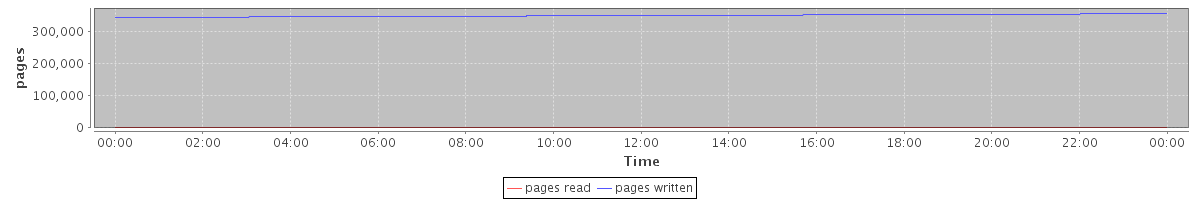 avg(pages read) = 1289.00 avg(pages written) = 351042.71