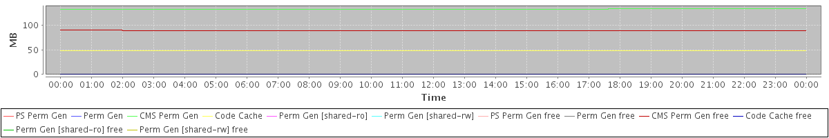 avg(PS Perm Gen) = 0.00 avg(Perm Gen) = 0.00 avg(CMS Perm Gen) = 132.55 avg(Code Cache) = 47.49 avg(Perm Gen [shared-ro]) = 0.00 avg(Perm Gen [shared-rw]) = 0.00 avg(PS Perm Gen free) = 0.00 avg(Perm Gen free) = 0.00 avg(CMS Perm Gen free) = 89.00 avg(Code Cache free) = 0.38 avg(Perm Gen [shared-ro] free) = 0.00 avg(Perm Gen [shared-rw] free) = 0.00