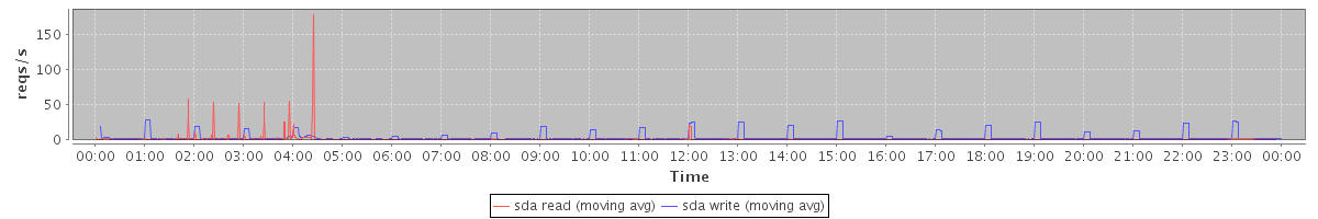 avg(sda read) = 0.56 avg(sda write) = 3.36
