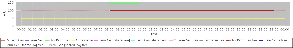 avg(PS Perm Gen) = 0.00 avg(Perm Gen) = 0.00 avg(CMS Perm Gen) = 146.42 avg(Code Cache) = 47.55 avg(Perm Gen [shared-ro]) = 0.00 avg(Perm Gen [shared-rw]) = 0.00 avg(PS Perm Gen free) = 0.00 avg(Perm Gen free) = 0.00 avg(CMS Perm Gen free) = 99.00 avg(Code Cache free) = 0.33 avg(Perm Gen [shared-ro] free) = 0.00 avg(Perm Gen [shared-rw] free) = 0.00