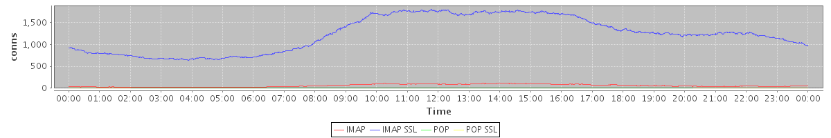 Host zm07.stanford.edu: Mailboxd: Active Connections by Client Protocol