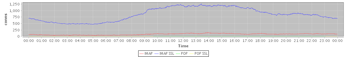 Host zm01.stanford.edu: Mailboxd: Active Connections by Client Protocol