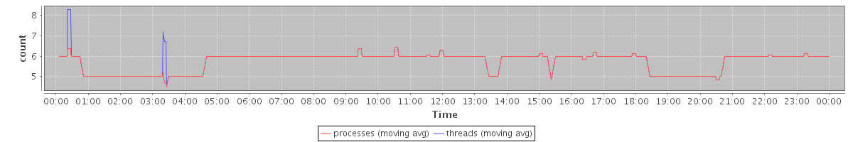 avg(processes waiting for run time) = 1.10 avg(processes waiting for io time) = 0.55 avg(load average (1 min)) = 1.76