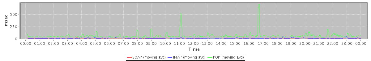 avg(IMAP) = 60.60 avg(IMAP SSL) = 799.22 avg(POP) = 0.12 avg(POP SSL) = 1.36