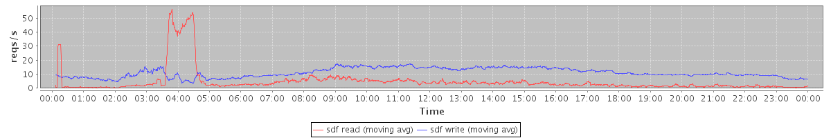 avg(sda read) = 0.61 avg(sda write) = 4.14