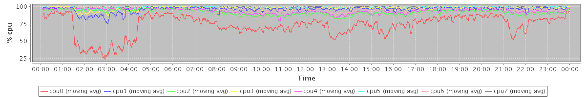 avg(cpu0) = 15.61 avg(cpu1) = 0.98 avg(cpu2) = 0.49 avg(cpu3) = 0.53 avg(cpu4) = 0.26 avg(cpu5) = 0.18 avg(cpu6) = 0.09 avg(cpu7) = 0.07