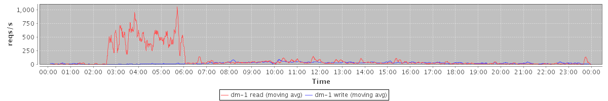avg(dm-1 read) = 95.47 avg(dm-1 write) = 26.20