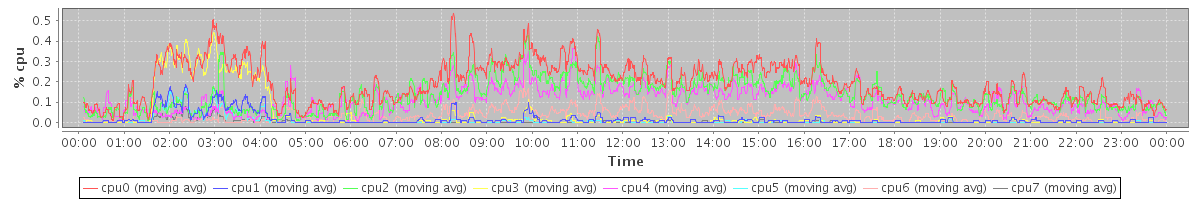 avg(cpu0) = 0.08 avg(cpu1) = 0.13 avg(cpu2) = 0.02 avg(cpu3) = 0.09 avg(cpu4) = 0.02 avg(cpu5) = 0.02 avg(cpu6) = 0.02 avg(cpu7) = 0.01
