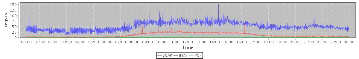 Host zm03.stanford.edu: Mailboxd: Request Rate by Client Protocol