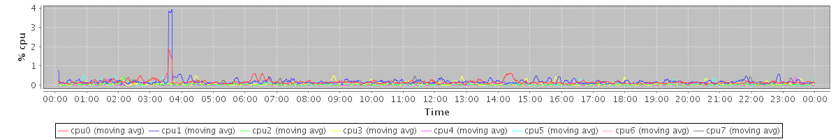 avg(cpu0) = 0.15 avg(cpu1) = 0.18 avg(cpu2) = 0.04 avg(cpu3) = 0.07 avg(cpu4) = 0.03 avg(cpu5) = 0.04 avg(cpu6) = 0.01 avg(cpu7) = 0.03
