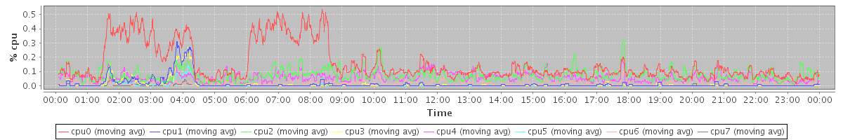avg(cpu0) = 0.06 avg(cpu1) = 0.11 avg(cpu2) = 0.01 avg(cpu3) = 0.03 avg(cpu4) = 0.01 avg(cpu5) = 0.01 avg(cpu6) = 0.01 avg(cpu7) = 0.01
