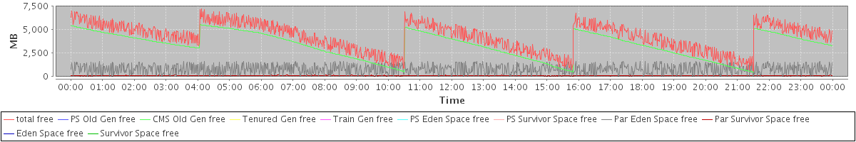 avg(total free) = 4244.24 avg(PS Old Gen free) = 0.00 avg(CMS Old Gen free) = 3348.54 avg(Tenured Gen free) = 0.00 avg(Train Gen free) = 0.00 avg(PS Eden Space free) = 0.00 avg(PS Survivor Space free) = 0.00 avg(Par Eden Space free) = 793.78 avg(Par Survivor Space free) = 101.92 avg(Eden Space free) = 0.00 avg(Survivor Space free) = 0.00
