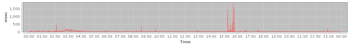 max(GetMsgRequest) = 39.00 max(SearchConvRequest) = 30.00 max(GetFolderRequest) = 658.00 max(SearchRequest) = 46.00 max(ItemActionRequest.delete) = 28.00 max(MsgActionRequest.delete) = 209.00 max(NoOpRequest) = 58.00 max(SyncRequest) = 81.00 max(ConvActionRequest.trash) = 25.00 max(GetDomainInfoRequest) = 32.00