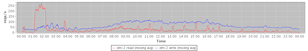 avg(dm-2 read) = 503.55 avg(dm-2 write) = 1329.70