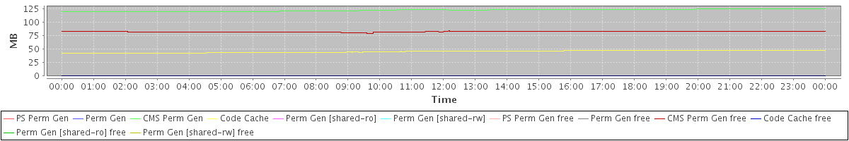 avg(PS Perm Gen) = 0.00 avg(Perm Gen) = 0.00 avg(CMS Perm Gen) = 121.98 avg(Code Cache) = 45.34 avg(Perm Gen [shared-ro]) = 0.00 avg(Perm Gen [shared-rw]) = 0.00 avg(PS Perm Gen free) = 0.00 avg(Perm Gen free) = 0.00 avg(CMS Perm Gen free) = 82.10 avg(Code Cache free) = 0.35 avg(Perm Gen [shared-ro] free) = 0.00 avg(Perm Gen [shared-rw] free) = 0.00