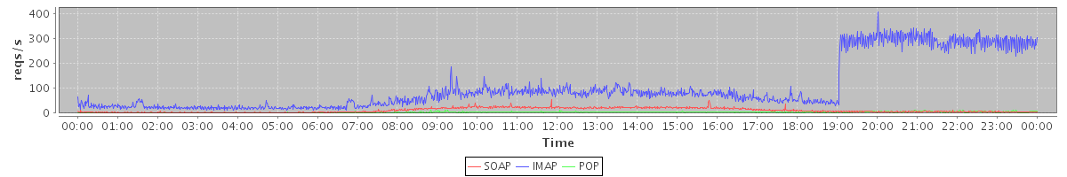 Host zm01.stanford.edu: Mailboxd: Request Rate by Client Protocol