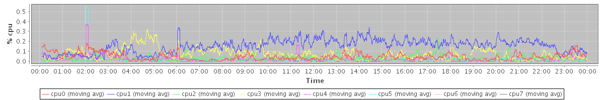 avg(cpu0) = 0.05 avg(cpu1) = 0.15 avg(cpu2) = 0.03 avg(cpu3) = 0.07 avg(cpu4) = 0.02 avg(cpu5) = 0.01 avg(cpu6) = 0.01 avg(cpu7) = 0.00