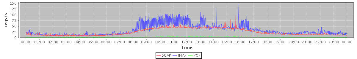Host zm06.stanford.edu: Mailboxd: Request Rate by Client Protocol