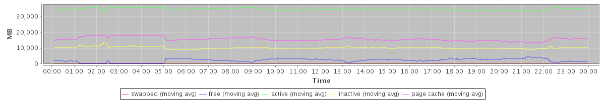 avg(swapped) = 34.27 avg(free) = 2216.93 avg(active) = 34517.60 avg(inactive) = 10171.64 avg(page cache) = 15637.25