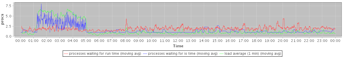 avg(processes waiting for run time) = 1.31 avg(processes waiting for io time) = 0.66 avg(load average (1 min)) = 1.63