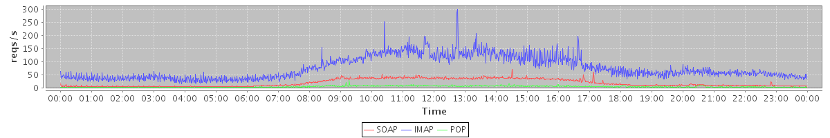 Host zm05.stanford.edu: Mailboxd: Request Rate by Client Protocol