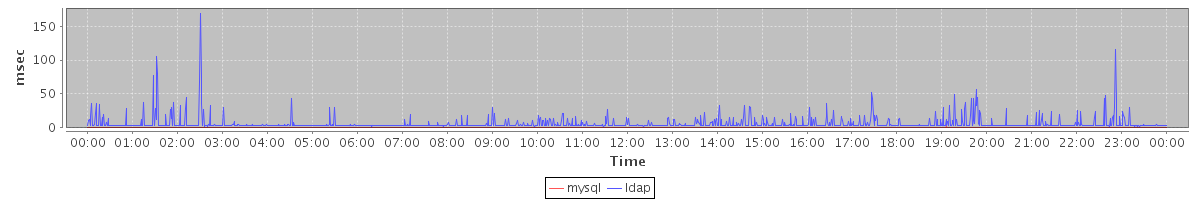 avg(mysql) = 0.24 avg(ldap) = 6.01