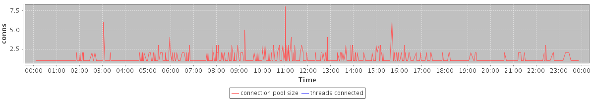 avg(connection pool size) = 0.55 avg(threads connected) = 0.00