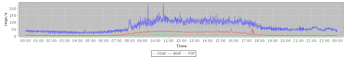 Host zm05.stanford.edu: Mailboxd: Request Rate by Client Protocol