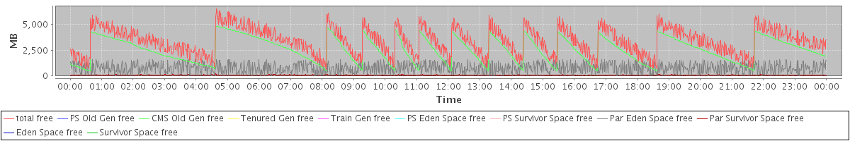 avg(total free) = 3392.38 avg(PS Old Gen free) = 0.00 avg(CMS Old Gen free) = 2531.46 avg(Tenured Gen free) = 0.00 avg(Train Gen free) = 0.00 avg(PS Eden Space free) = 0.00 avg(PS Survivor Space free) = 0.00 avg(Par Eden Space free) = 775.88 avg(Par Survivor Space free) = 85.04 avg(Eden Space free) = 0.00 avg(Survivor Space free) = 0.00