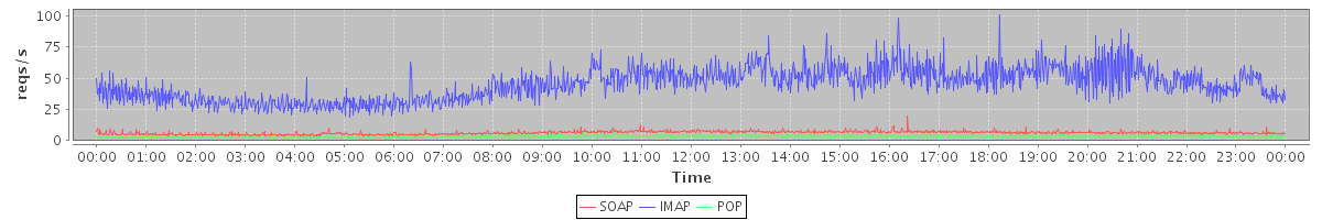 Host zm05.stanford.edu: Mailboxd: Request Rate by Client Protocol
